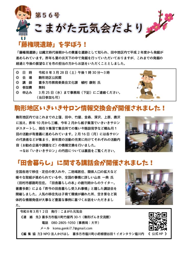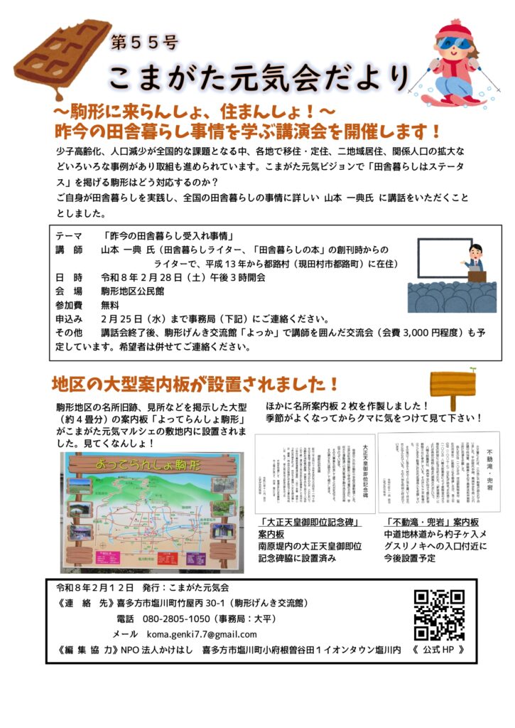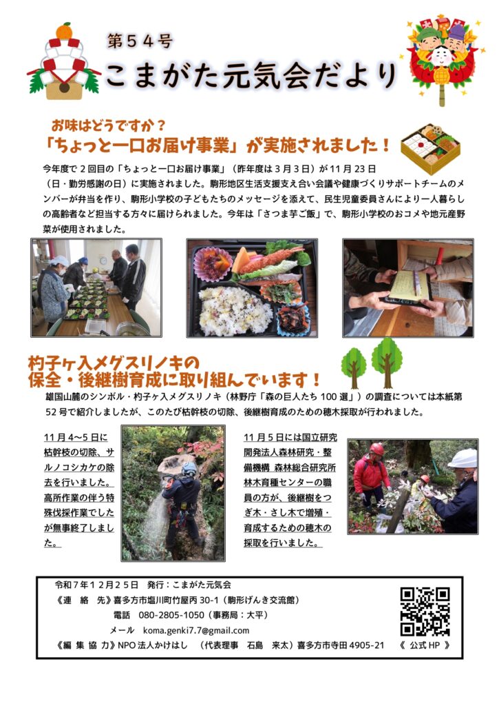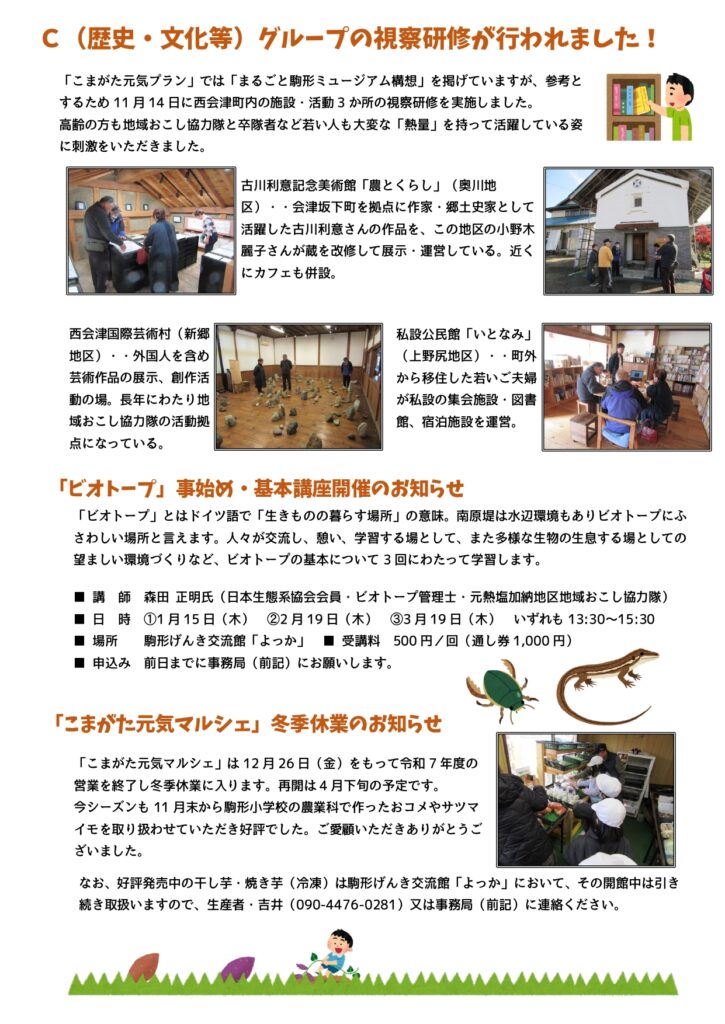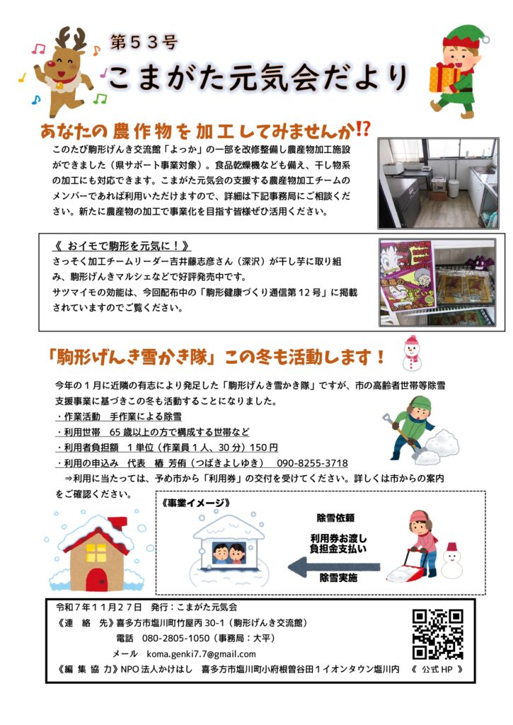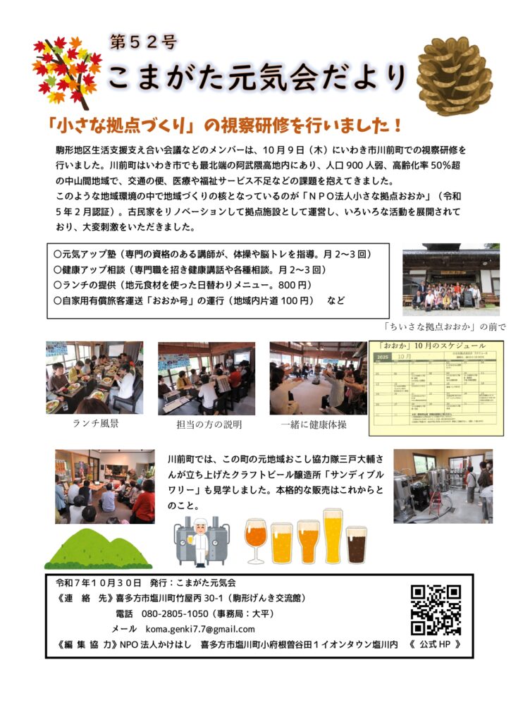 主に元気会本体の活動や地区内で行われた行事などの情報をまとめ、駒形地区内に向けて月に1〜2回程度発行してる情報誌です。